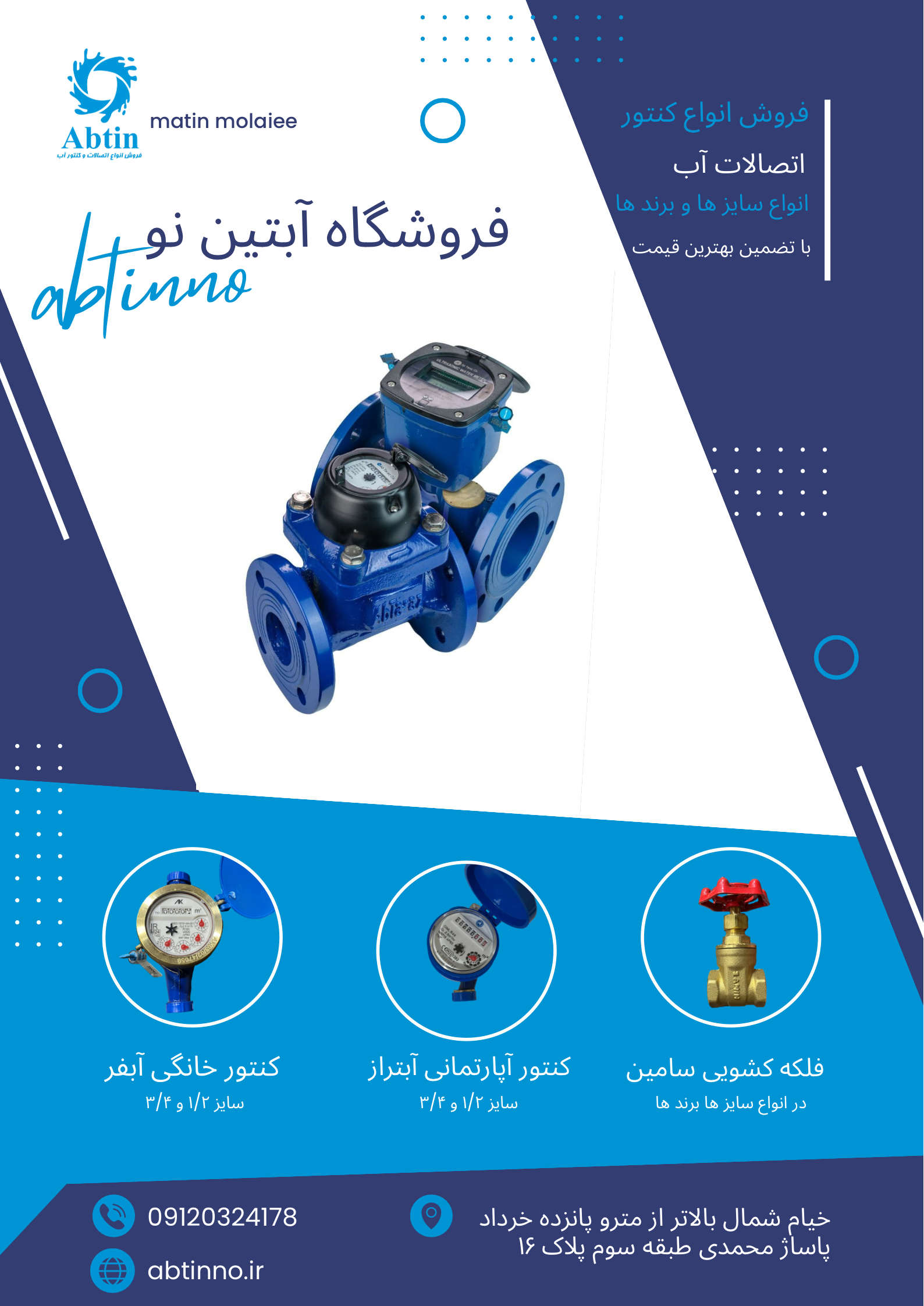فروشگاه آبتین نو و عرضه مستقیم محصولات آبتراز کنتورآب دی ام R100 کنتورآبR160 کنتور های کشاورزی کنتور آب مگنت داره تابلو(کانتر) کنتورها حجمی و کشاورزی انواع کنتور آبان کنتور نیکترارTK_23 کنتور سنسور دار آبان و... پخش انواع شیر فلکه kitz,cim و انواع ایرانی و چینی در همه سایز کنتور آب کنتور آب آپارتمانی کنتور کشاورزی کنتور فرعی شیر شبکه(انشعاب) شیر قطع و وصل شیر خودکار شیر سوئیچی پرواز . پارس برنز . طلاییه مغزی شیر مخلوط شیر شیلنگی نوارتفلون شیر صافی شیر سوزنی شیر سوئیچی شیر آتش نشانی سایز 5 و 7 محصولات شرکت پرواز شیر قطع وصل پرواز شیر خودکار پارس برنز قطع ووصل شیر خودکار عقاب شبکه شیر قطع ووصل شیر خودکار 1اینچ f میرزمانی طلاییه kan کار اندیشان شیر قطع ووصل شیر خودکار میر زمانی شیر قطع ووصل شیر خودکار محصولات پلیمری تولید و پخش کنتور آب آپارتمانی، خانگی و حجمی کشاورزی در سایز های متفاوت انواع انشعاب های برنزی و پلیمری سازمان آب کیت کامل شامل دریچه بازدید، محفظه، مغزی، نوار تفلون، پایه کنتور، لوله محفظه، شیر انشعاب، شیر خودکار، شیر سوئیچی یا شیر قطع وصل شرکتهای پرواز برنز، پارس برنز فرهنگ، میر زمانی، و... برای مشاوره در تلگرام پیام دهید خرید از فروشگاه اینترنتی abtinno.ir تخفیف ویژه برای همکاران شهرستانی های عزیز.